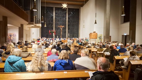 Kantor József Opicz verstand es über den ganzen Abend, die Gemeinde aktiv einzubeziehen. Er animierte nicht nur zum Mitsingen, sondern lud die Anwesenden unter anderem bei „Es kommt ein Schiff geladen“ auf eine kleine „Schiffsreise“ ein: Mit Geräuschen und Bewegungen konnten sie beispielsweise die Wellen nachempfinden. Bei weiteren Liedern sorgten mehrstimmige Passagen – die auch spontan eingeübt wurden - oder der Wechsel zwischen Frauen- und Männerstimmen für Lebendigkeit. Die musikalische Begleitung wechselte dabei zwischen Posaunenchor, Orgel und Klavier.
