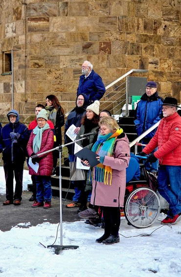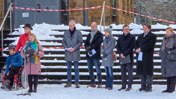 Besondere Aufmerksamkeit galt bei der diesjährigen Gedenkveranstaltung in Bad Oeynhausen den NS-Opfern am Wittekindshof. Neben den Opfern der Krankenmorde fielen weitere Bewohnerinnen und Bewohner dem Rassenwahn und Staatsterror zum Opfer. Sechs dieser Leben wurde vor der Auferstehungskirche gedacht, darunter Alice „Liesl“ Bukofzer, die als zutraulicher und vergnügter Mensch beschrieben wurde. Sie wurde nur 20 Jahre alt. Wolfgang Leyser, durch eine Erkrankung als Kleinkind stark beeinträchtigt, kam mit 14 Jahren an den Wittekindshof. Seine Eltern fanden Sicherheit in Argentinien. Er selbst erreichte nur das 16. Lebensjahr.