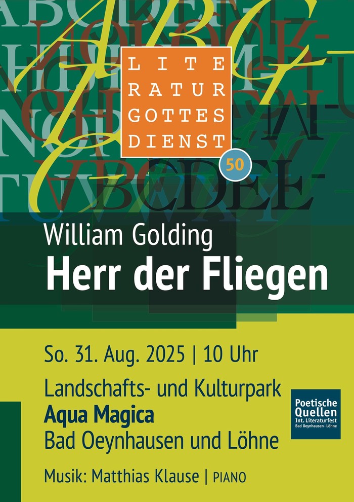 Nicht weniger als fünfzig Literaturgottesdienste haben mit ihrem etwas anderen Blick auf bekannte und weniger bekannte Werke das Publikum in Bad Oeynhausen überrascht und begeistert und eine treue Fangemeinde gewonnen. Im Mittelpunkt des 50. Literaturgottesdienstes am 31. August um 10 Uhr im Literaturzelt der Poetischen Quellen steht dieses Mal ein Klassiker der Weltliteratur: William Goldings „Herr der Fliegen“.